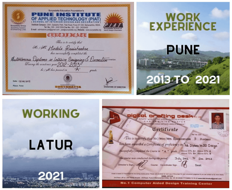 I’m Ravi Hindole, an interior designer with over 10 years of experience in transforming spaces into functional and aesthetically pleasing environments. I specialize in both residential and commercial projects, creating personalized designs that seamlessly blend modern trends with timeless principles. Based in Latur, Ausa, and Pune, I focus on understanding each client’s unique style, needs, and budget. Through close collaboration, I deliver spaces that reflect their vision while maximizing functionality. My expertise spans space planning, color schemes, furniture selection, lighting, and overall layout to ensure each project is a perfect balance of form and function.